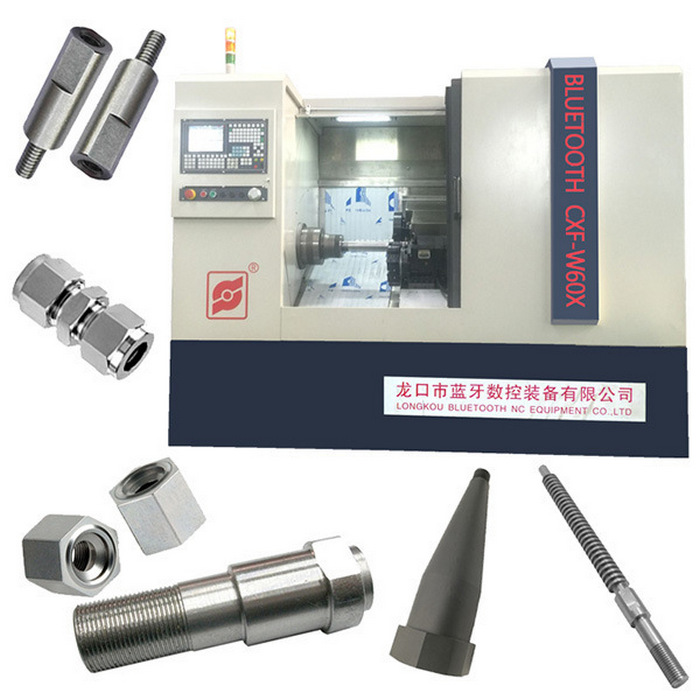 数控车方机床标配四工位转塔刀架,根据零配件加工尺寸,车铣方的长度及精度要求,可定制选配尾座顶尖,从而提高零配件加工时精度要求。蓝牙数控车方机/车铣复合一体加工机床适用于批量的轴,套,台阶轴,阀杆,汽车零配件加工,可通过一次装夹同时完成车外圆,平端面,挖槽,挑螺纹,钻中心孔,以及车铣两方,三方,四方,五方,六方,七方,八方等多角/多边/多面的加工,弥补了普通车床,铣床刀具少,工序繁琐,加工影响工件精度的缺点,因此该款数控车方机床可节约辅助加工时间,生产效率高,精度高,机床床身采用球墨铸铁铸造体,刚性/稳定性可想而知,相比起南方多数车方机厂家,从机床的配置,性能,使用的长久性上考虑,蓝牙数控是您明智的选择!!